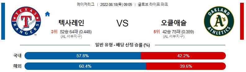 8월 18일 09:05 MLB 텍사스 : 오클랜드 MLB분석