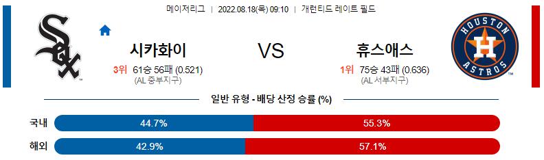 마이클 코펙(4승 8패 3.18)이 시즌 5승 도전에 나선다. 13일 디트로이트와 홈경기에서 6이닝 11삼진 노히트 노런의 쾌투를 보여준 코펙은 지긋지긋한 기복만 줄이면 위력적인 투수라는걸 새삼스레 증명해 보였다. 최근 2번의 홈 경기는 13이닝 2실점의 호조를 이어가고 있지만 6월 20일 휴스턴 원정의 5이닝 4실점 패배처럼 5할 이상 팀 상대 부진을 극복하느냐가 관건입니다. 전날 경기에서 벌랜더와 네리스 상대로 4점을 올린 화이트삭스의 타선은 필요할때 필요한 득점이 이번 시리즈 내내 꼬박꼬박 나온다는 점이 최고의 장점이자 가장 무서운 부분입니다. 특히 벌랜더 상대로 호조를 보였다는 점이 긍정적인 부분. 4이닝을 3안타 무실점으로 막아낸 불펜은 이번 시리즈 한정으로 휴스턴의 그것보다 확실한 우위를 점유중입니다.