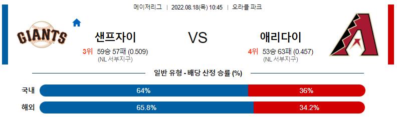 8월 18일 10:45 MLB 샌프란시스코 : 애리조나 MLB분석