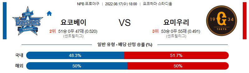 일본프로야구 센트럴리그 요코하마 베이스타스 요미우리 자이언츠의 경기가 오는 수요일(8/17) 18:00 요코하마의 홈 구장인 요코하마 스타디움에서 열릴 예정입니다. 요코하마 베이스타스 요미우리 자이언츠 양 팀 간의 이번 주중 3연전 가운데 두번째로 펼쳐지는 경기입니다.