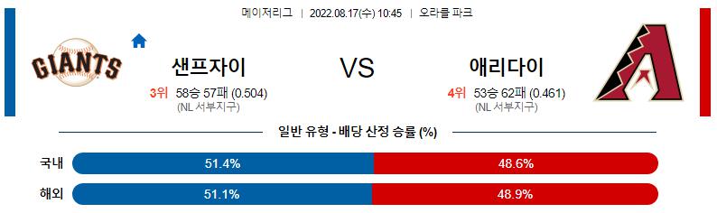 8월 17일 10:45 MLB 샌프란시스코 : 애리조나 MLB분석
