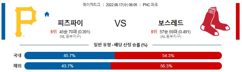 열람중 8월 17일 08:05 MLB 피츠버그 : 보스턴 MLB분석 2022.08.17 208