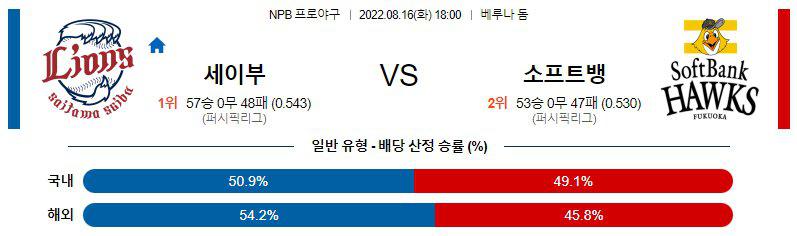 【NPB】 8월16일 세이부 vs 소프트뱅크