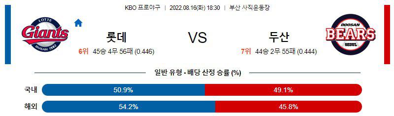 열람중 【KBO】 8월16일 롯데 vs 두산 2022.08.16 196