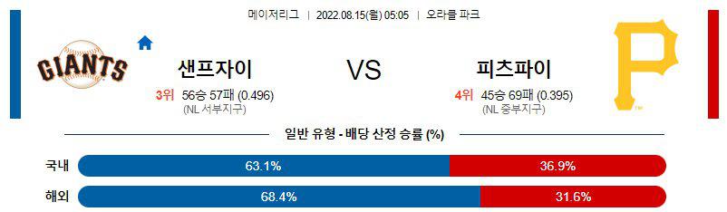 【MLB】 8월 15일 샌프란시스코 vs 피츠버그