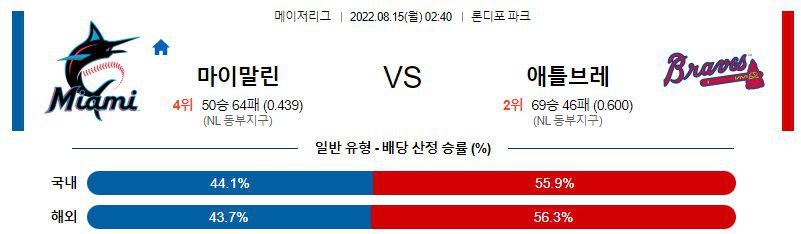 【MLB】 8월 15일 마이애미 vs 애틀란타