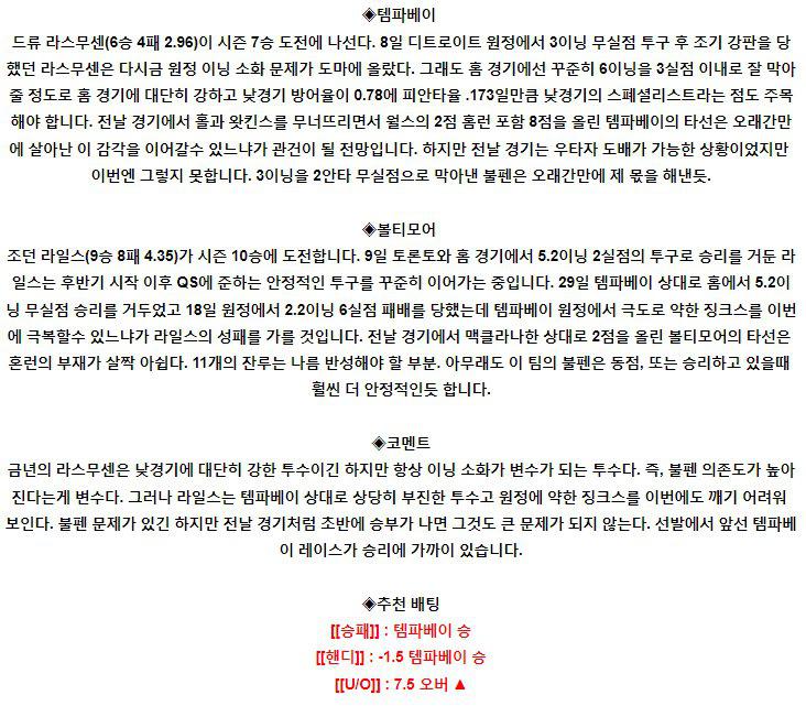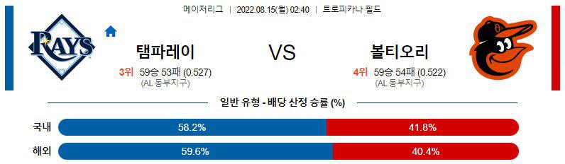 【MLB】 8월 15일 탬파베이 vs 볼티모어