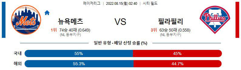 【MLB】 8월 15일 뉴욕매츠 vs 필라델피아