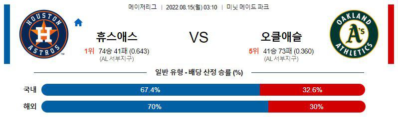 【MLB】 8월 15일 휴스턴 vs 오클랜드