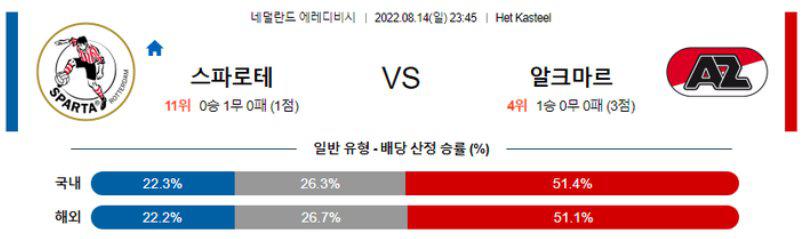 열람중 【Eredevisie】 8월14일 스파르타로테르담 vs AZ알크마르 2022.08.14 193