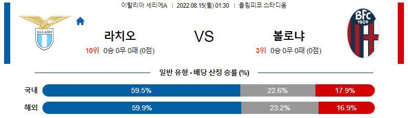 【세리에A】 8월15일 라치오 vs 볼로냐