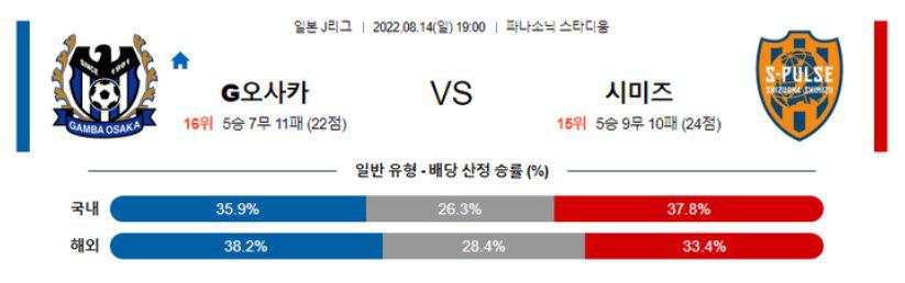 【J리그】 8월14일 감바오사카 vs 시미즈