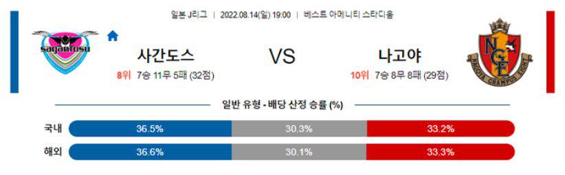 【J리그】 8월14일 사간도스 vs 나고야