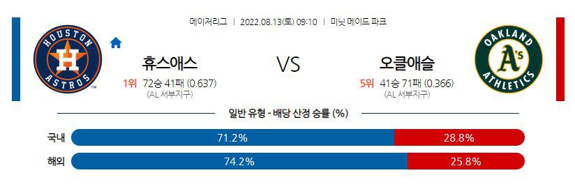 【MLB】 8월 13일 휴스턴 vs 오클랜드
