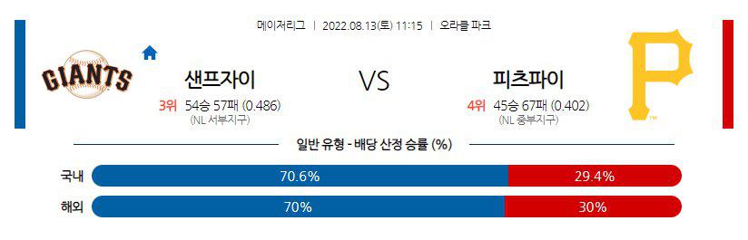 샌프란시스코의 승리를 점친다. 로돈의 최근 기세와 직구의 구위는 상당히 좋은 상황이고 지난 맞대결에서도 8이닝 8K를 잡아내는 등 좋은 기억도 있는 팀이다. 지난 경기에서 보여준 타격 성과도 샌프란시스코 쪽이 압도적인 상황이며 윌슨이 피장타 위험이 항상 도사리고 있는 상황임을 고려하면 샌프란시스코가 완승을 거둘 가능성도 상당히 높다. 샌프란시스코의 핸디(-1.5) 승리도 노려볼 수 있는 매치업.