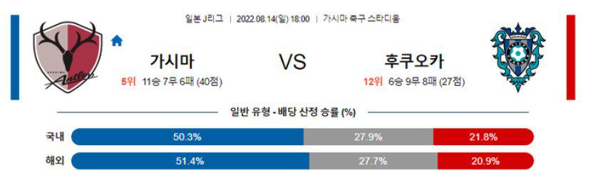 【J리그】 8월14일 가시마 vs 후쿠오카
