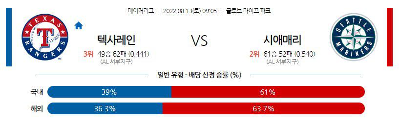 【MLB】 8월 13일 텍사스 vs 시애틀