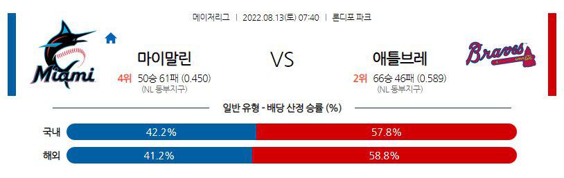 【MLB】 8월 13일 마이애미 vs 애틀란타