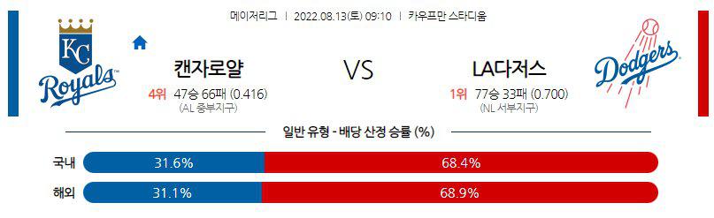 【MLB】 8월 13일 캔자스시티 vs LA다저스