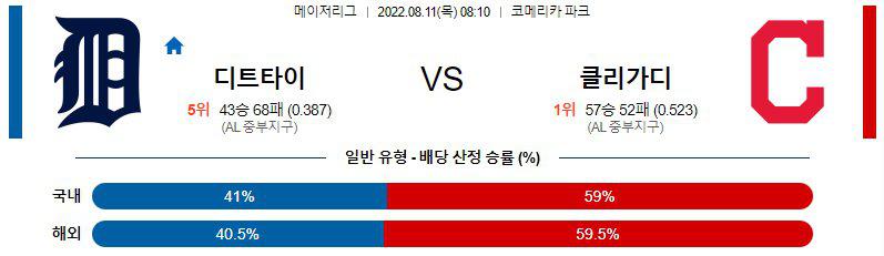 8월 12일 02:10 MLB 디트로이트 : 클리블랜드