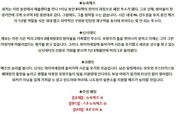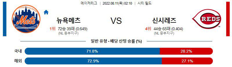 【MLB】 8월 11일 뉴욕메츠 vs 신시내티