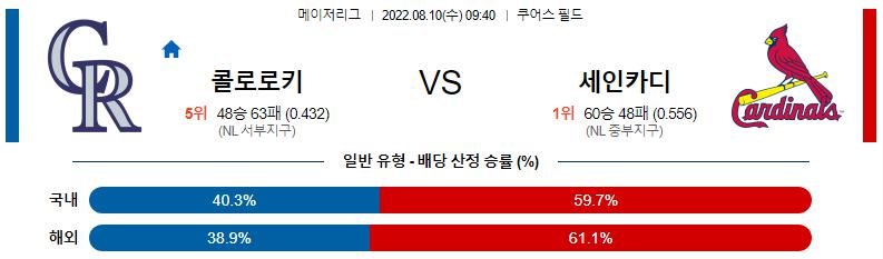 8월 10일 09:40 MLB 콜로라도 : St.루이스 MLB분석