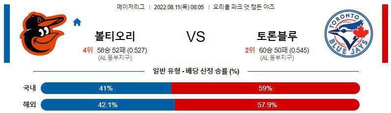 【MLB】 8월 11일 볼티모어 vs 토론토