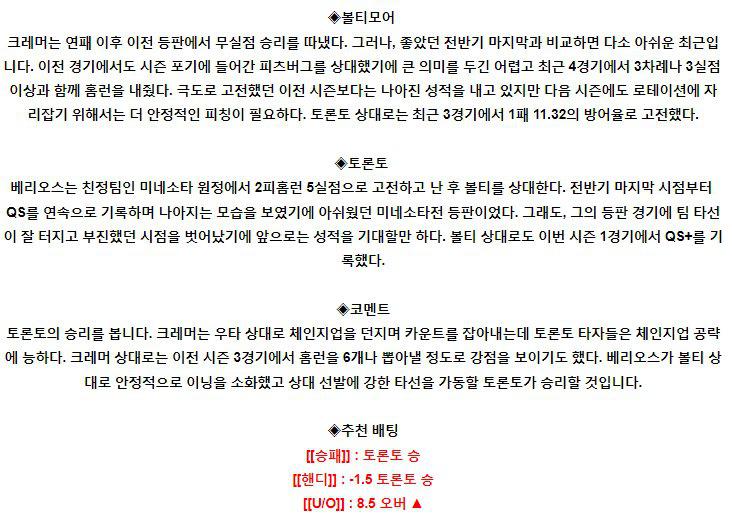 ◈보스턴 리치 힐(4승 5패 4.52)이 시즌 5승 도전에 나섭니다. 4일 휴스턴 원정에서 3이닝 4실점의 부진으로 패배를 당했던 힐은 한달만의 복귀전이 엉망이 되면서 아직 정상 컨디션이 아니라는걸 드러낸바 있습니다. 금년 홈 경기에서도 부진이 계속되고 있는 상황인지라 정말 5이닝을 버틸수 있나부터 진지하게 고민해야 할 정도다. 월요일 경기에서 캔자스시…