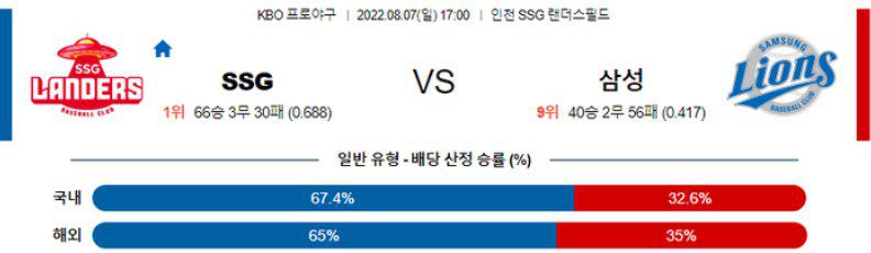 직구와 변화구 주소모두 같은 팔회전과 궤도에서 나와 구종 파악이 어렵다는 장점을 가지고 있는 모리만도 투수에게 생소함 이라는 추가적인 무기가 장착되는 만큼 선발 싸움에서 모리만도 투수가 우위에 있는 경기다. 또한, 전일 경기에서 1-5, 스코어로 끌려가던 경기를 11회 연장전 승부 끝에 7-6, 역전승을 만들어 낸 SSG 타선에 대한 기대치가 높아진 타이밍. SSSG 승리 가능성을 추천 한다.