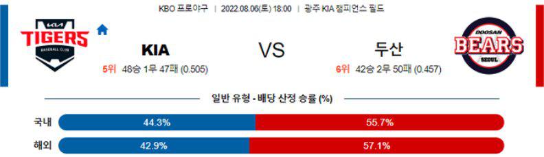 임기영 투수는 직전경기(7/31) 홈에서 SSG 상대로 6이닝 3실점 패배를 기록했으며 이전경기(7/26) 홈에서 NC 상대로 5이닝 3실점 패배를 기록했다. 4연패 흐름 속에 올시즌 15경기 2승8패, 6경기 QS 성적이며 5월 5경기 3패, 4.28, 6월 5경기 2승2패, 3.64, 7월 4경기 3패, 4.76의 기록. 올시즌 15차례 등판중 10경기에서 자신의 몫을 해냈고 나머지 5경기에서는 투구 밸런스가 흔들렸던 상황. 올시즌 홈에서 9경기 2승4패, 4.11 올시즌 상대전 2경기 1패, 3.55, 12.2이닝 5실점 기록이 있다.
