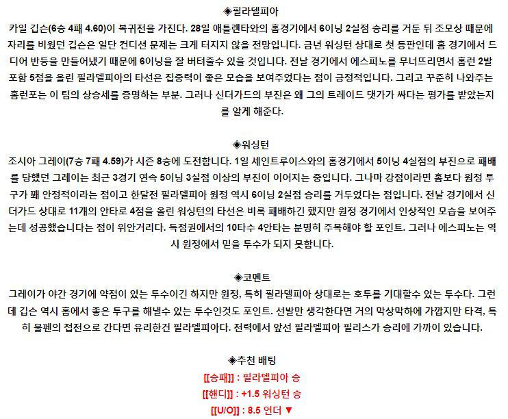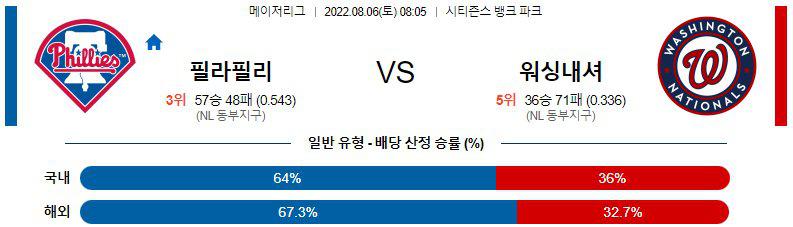 【MLB】 8월 6일 필라델피아 vs 워싱턴
