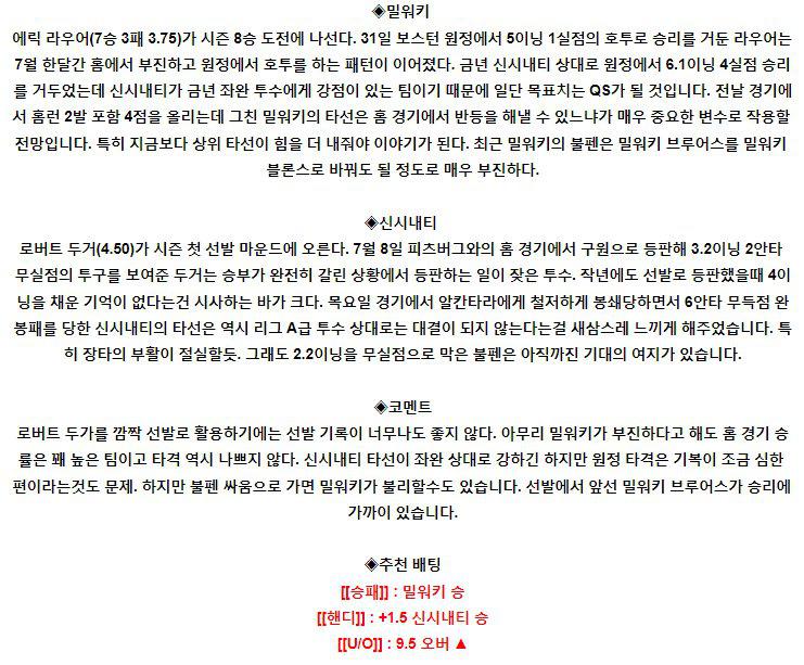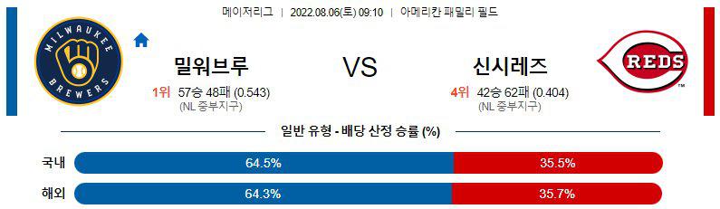 【MLB】 8월 6일 밀워키 vs 신시내티