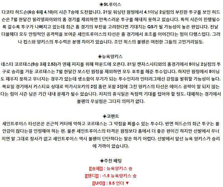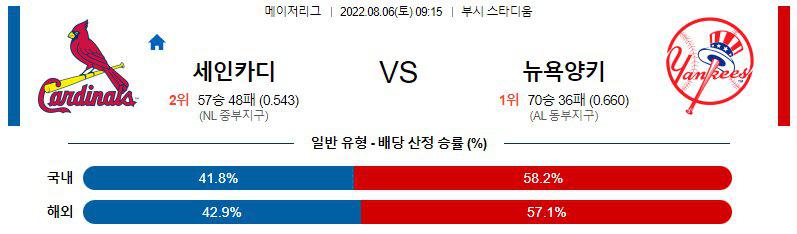 【MLB】 8월 6일 세인트루이스 vs 뉴욕양키스