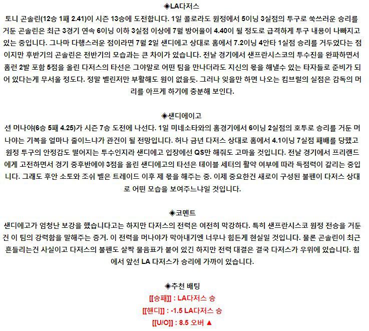 【MLB】 8월 6일 LA다저스 vs 샌디에이고