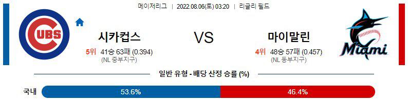 【MLB】 8월 6일 시카고컵스 vs 마이애미