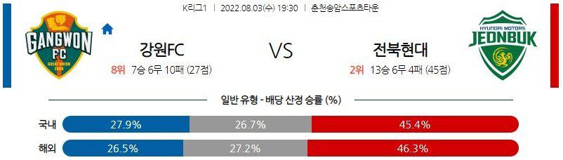 【K리그1】8월 3일 강원 FC vs 전북 현대