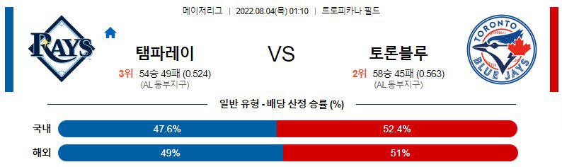 【MLB】 8월 4일 탬파베이 vs 토론토