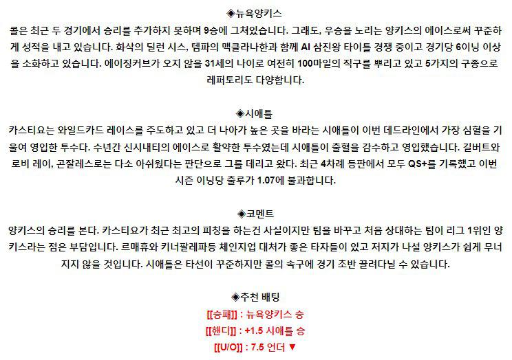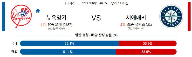 【MLB】 8월 4일 뉴욕양키스 vs 시애틀