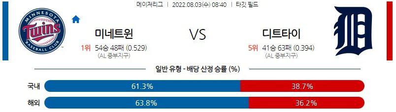 【MLB】 8월 3일 미네소타 vs 디트로이트