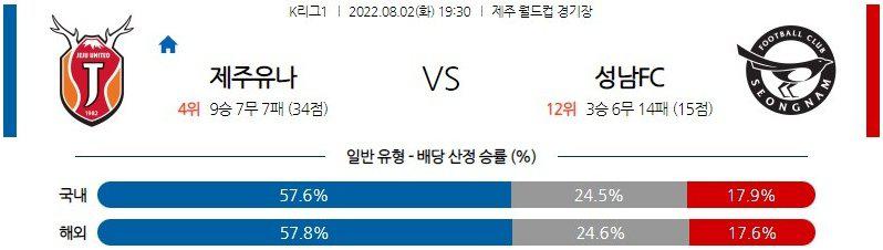 【K리그1】 8월 2일 제주 유나이티드 vs 성남