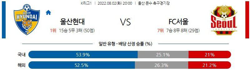 이번 일정의 메인 선택지는 '핸디캡 무승부(H-1.0)'다. 상술했듯이, 양 팀 주소모두 최근 페이스가 좋으나, 울산의 객관적인 전력과 시즌 전체의 성적이 더 좋은 편. 울산의 승리는 충분히 예상이 가능하므로 배당 효율면에서 그다지 추천할만한 픽이 아니다. 다만, 울산이 최근 리그에서 거둔 5승 주소모두 1골 차 승리였으며, 서울과의 최근 세 차례 맞대결에서도 주소모두 2-1의 한 골 차 승리를 거둔 바 있다. 배당 효율까지 좋은 핸디캡 무승부(H-1.0) 선택지를 추천한다.