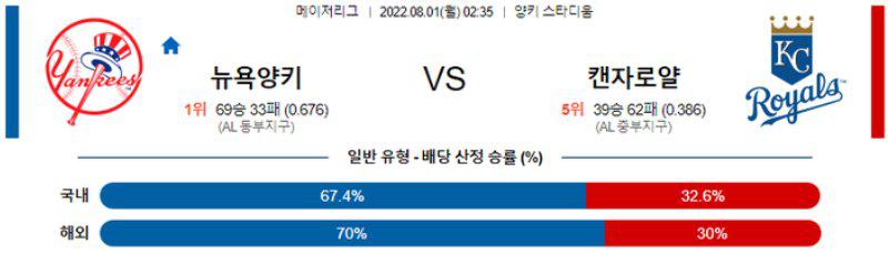 【MLB】 8월 1일 뉴욕 양키스 vs 캔자스시티