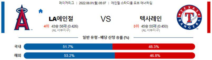 【MLB】 8월 1일 LA 에인절스 vs 텍사스 레인저스