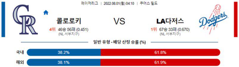 어제 프리랜드가 6이닝 3실점으로 호투를 펼쳐주었고 커쇼는 예상대로 5.1이닝 5실점(3자책)으로 고전하고 말았다. 그리고 이흐름은 경종까지 이어지고 말았다. 그리고 오늘 4차전이 펼쳐지게 되는데 오늘은 다저스의 승리가 예상된다. 물론 곤솔린의 최근 피칭내용이 좋지는 않아 콜로타선이 득점력에서 힘을 낼 가능성은 열어놔야 한다. 다만 최근 피칭흐름은 좋지만 올시즌 전반적으로 패스트볼 커맨드 문제가 컷던 마르케스를 쉽사리 신뢰하기도 어려운 상황!! 따라서 오늘 경기는 객관적인 전력상 우위를 점하고 있는 다저스가 승리할 것으로 예상된다.