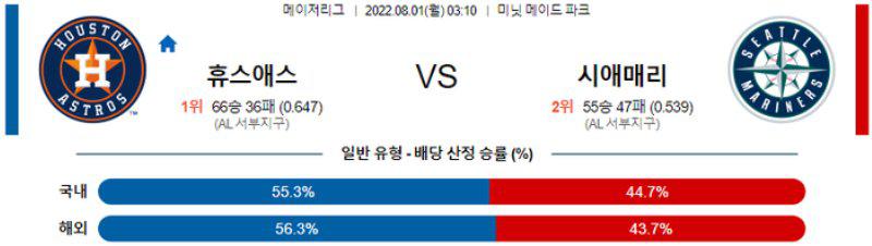 【MLB】 8월 1일 휴스턴 vs 시애틀