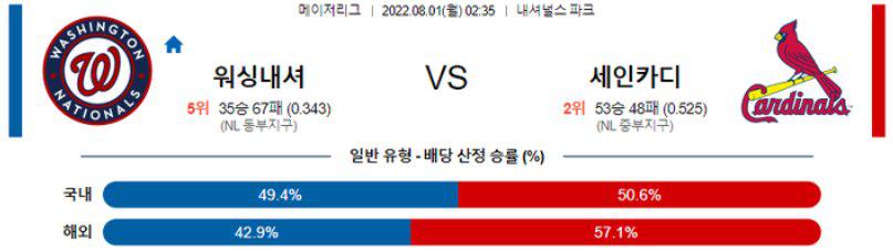 열람중 【MLB】 8월 1일 워싱턴 vs 세인트루이스 2022.07.31 170