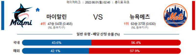 【MLB】 8월 1일 마이애미 vs 뉴욕 메츠