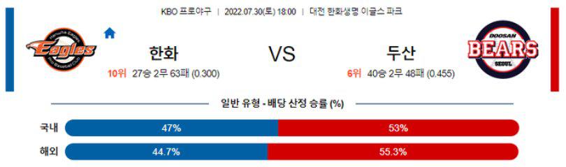 【KBO】 7월30일 한화 vs 두산
