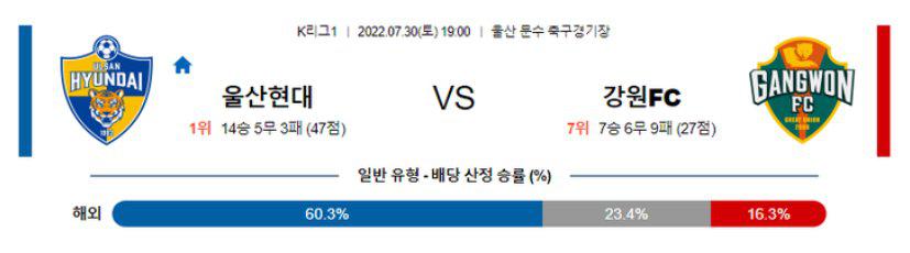 [K리그1] 7월30일 울산현대 vs 강원FC