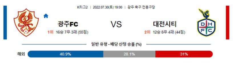 [K리그2] 7월30일 광주FC vs 대전시티즌